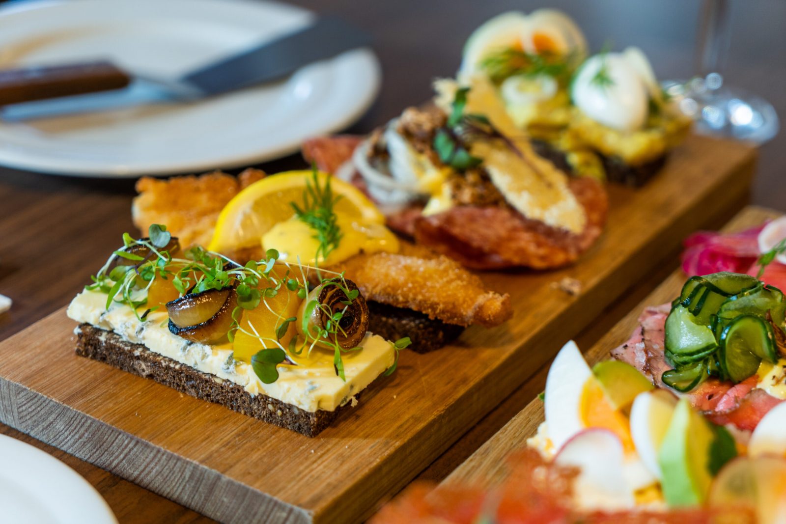 Four mini pre-selected smørrebrød, open sandwiches                                                                          add 4 x 20ml matching Akvavit +$28